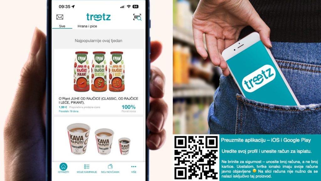 Upravo to omogućuje Treetz, inovativna digitalna platforma koja na nov način povezuje potrošače i proizvođače te omogućuje testiranje proizvoda u stvarnim životnim situacijama. Putem mobilne aplikacije potrošači kupuju proizvod u trgovini, skeniraju barkod, fotografiraju račun kao dokaz kupnje i u nekoliko minuta podijele svoje iskustvo s proizvodom. Nakon toga dobivaju povrat novca za kupnju.